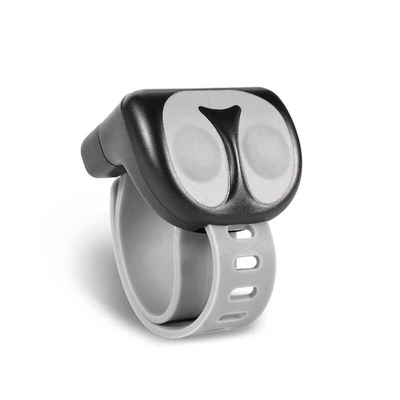 Prijímač aj prsteň sú vodotesné odolné zariadenia. Zvládnu akékoľvek počasie. Prijímač sa dodáva s tkaným popruhom, ktorý môžete podľa potreby skrátiť. Obvod je nastaviteľný na dĺžku približne od 20 do 72 cm. Prstienkový ovládač vrátane silikónového remienka sa pohodlne prispôsobí vašim prstom alebo riadidlám kolobežky či bicykla.