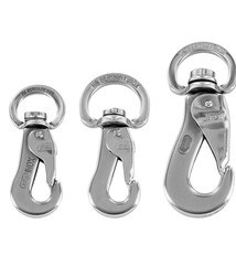 Kliešťové vypúšťacie karabínky s navareným otočným okom. Jednoduché a rýchle upevnenie a uvoľnenie. Vynikajúca p...