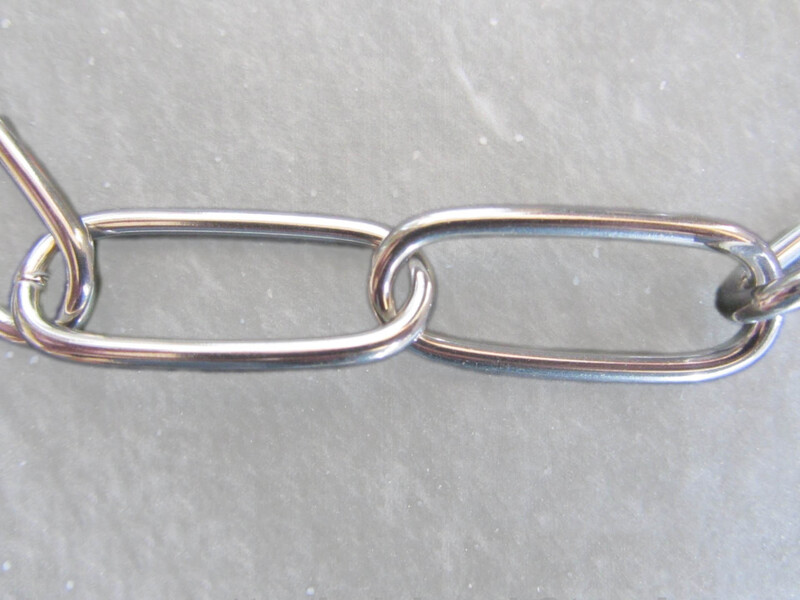 Our "Lightweight" impresses with a weight of only 0.08 to 0.110 kg per collar. The collar is therefore almost imperceptible to the dog. This gives the opportunity to work with the "surprise effect". Stainless steel collars are resistant to fresh and sea water but also to rust and represent the most powerful product of the brand for all dog life situations. You can recognize the stainless steel collars at first glance thanks to the embossed inscription "HS-GERMANY INOX" on the rings and the additional label with a red dot. This label embodies the highest strength, safety and durability that you can ever achieve with a chain collar. Features: 2 rings Material: high-quality stainless steel Length: 47 cm, the length of the collars is listed including the outer links Wire diameter: 3.00 mm Chain type: long links Dog weight: max 50 kg A commonly available mild detergent is generally sufficient to clean any metal dog chain. For stainless steel chains, we recommend using a special metal polish from time to time, such as our recommended Diamond Paste.