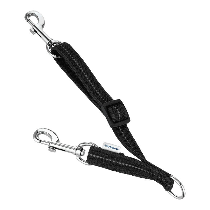 Spojovací popruh slúži ako bezpečnostné spojenie medzi dvoma upevňovacími bodmi, ako je výcvikový obojok a plochý obojok alebo postroj. Ak sa obojok otvorí, spojovací popruh zabezpečí, že váš pes zostane zaistený. S dĺžkou 10 cm na jednej strane a 20 cm na druhej strane umožňuje flexibilné upevnenie.