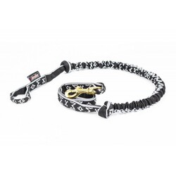 Vodítko s amortizérom na beh so psom s uškom, 25mm/230cm, ALU karabína, čierno-strieborná