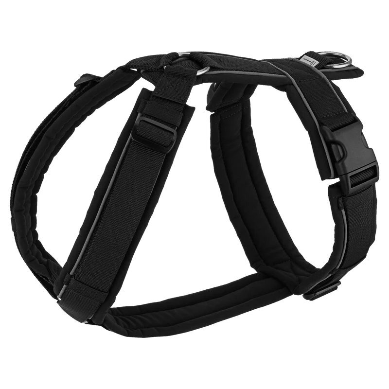 The smooth softshell padding (also under the high-quality Duraloc buckles) dries quickly, prevents rubbing and ensures a high level of comfort even for short-haired dog breeds and when worn for long durations. The robust harness material not only impresses with its high breaking strength, but also with its high color strength and a discreet shine. Whether you opt for the neon orange harness for maximum visibility or a classic all-black look: the reflective edging ensures greater visibility in traffic and thus increases safety on walks in the dark or at dusk.